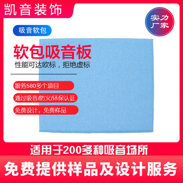 防撞防火軟包材質介紹:凱音防撞防火軟包常用規格:2400*600*25  1200*600*25  800*600*25  600*600*25 1200*400*25  800*400*25  600*400  等等規格。也可以根據實際需要規格定做生產,產品飾面采用阻燃布藝、或者阻燃裝飾皮革,飾面其可以做阻燃處理可達阻燃B1級防火標準,基材采用:A級不燃吸聲棉板雙面經過防塵玻纖氈處理后,可保證材質沒有粉塵掉落,棉板經聲學專業檢測機構檢測可提供專業聲學檢測報告,棉板基材厚度常用為:25mm  50mm  75mm  100mm等厚度,其他厚度可定做生產。